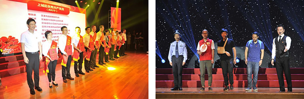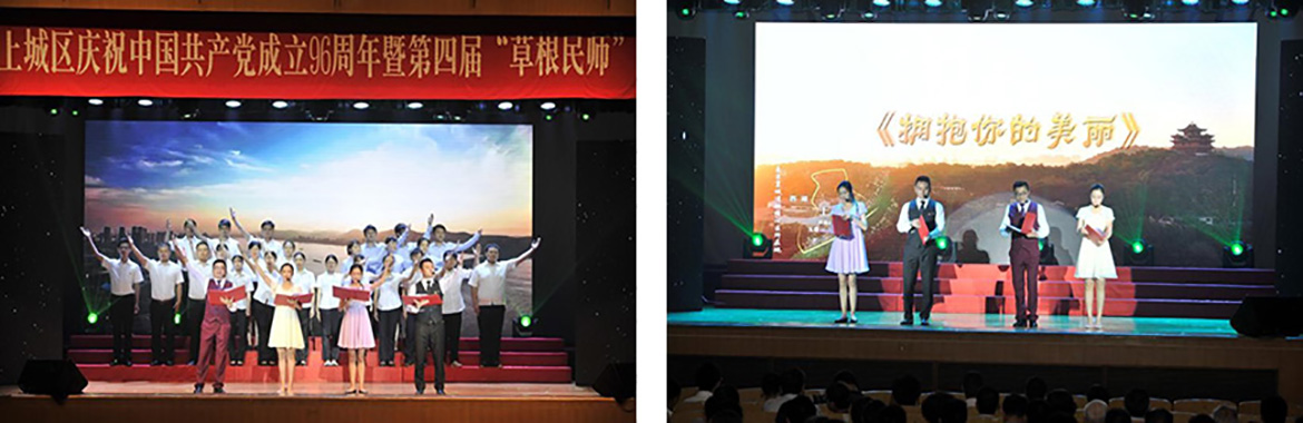 為迎接黨的96歲生日,2017年6月30日上午,由中共杭州市上城區委員會主辦的上城區慶祝中國共產黨成立96周年暨第四屆“草根名師”講堂在上城區政府3樓大禮堂隆重舉行。區委對先進基層黨組織、優秀共產黨員、優秀黨務工作者進行了表彰,整臺盛會通過《擔當職責》、《奉獻之美》、《向你看齊》與《創新之力》四個篇章,弘揚了普通黨員甘于奉獻、全心全意為人民服務的崇高精神。