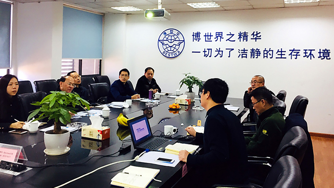 博世華環(huán)保負責人向經(jīng)信委調(diào)研工作組介紹了博世華總部以及承擔環(huán)保裝備生產(chǎn)的貝格勒全資子公司的生產(chǎn)經(jīng)營情況,并與調(diào)研工作組就新形勢下環(huán)保設(shè)備生產(chǎn)的轉(zhuǎn)型升級及工程管理向工程服務(wù)的延伸,做了深入探討。