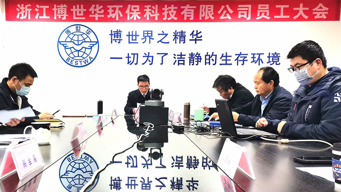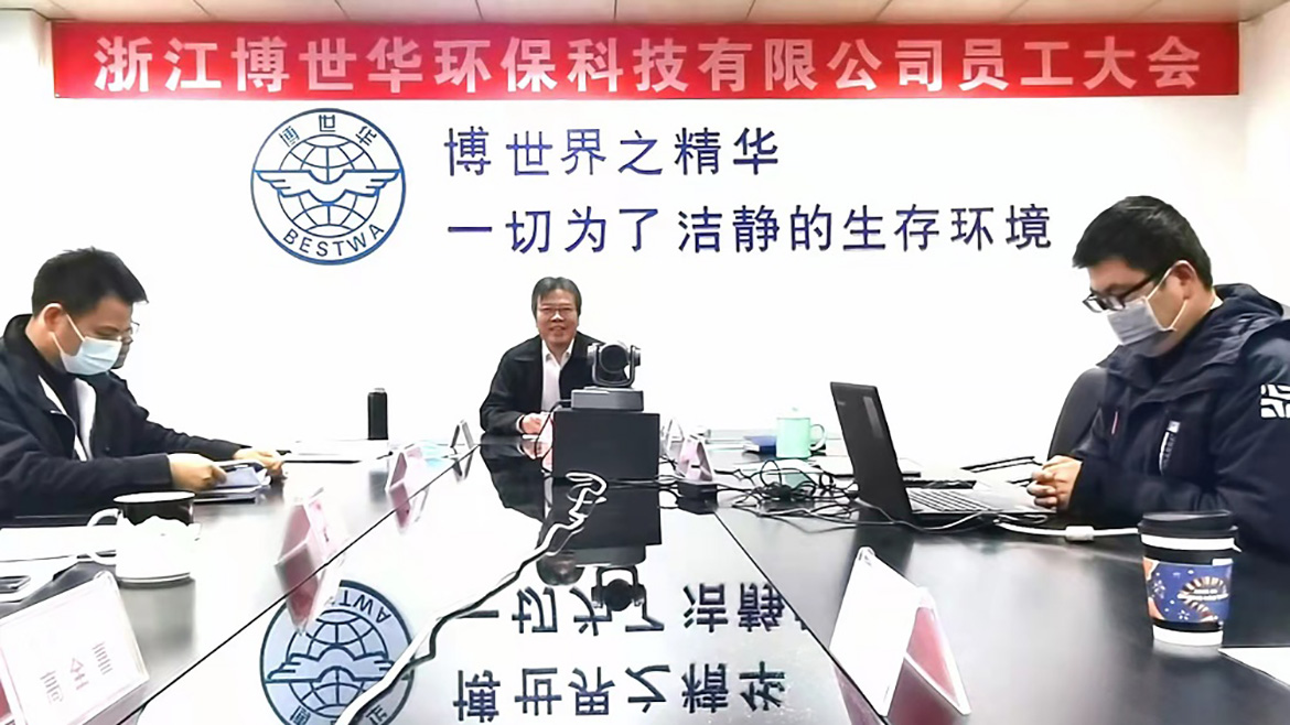 金牛辭歲寒風盡,白虎迎春喜氣來。2022年1月25日上午,浙江博世華環保科技有限公司2021年度員工大會圓滿召開。因疫情防控需要,本次會議采取線上直播的形式,由總經理王衛民主持。
