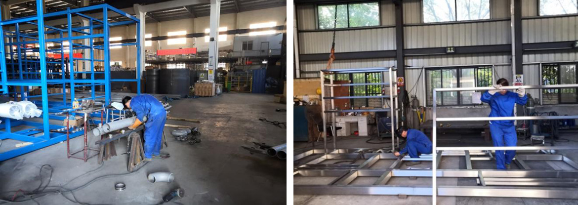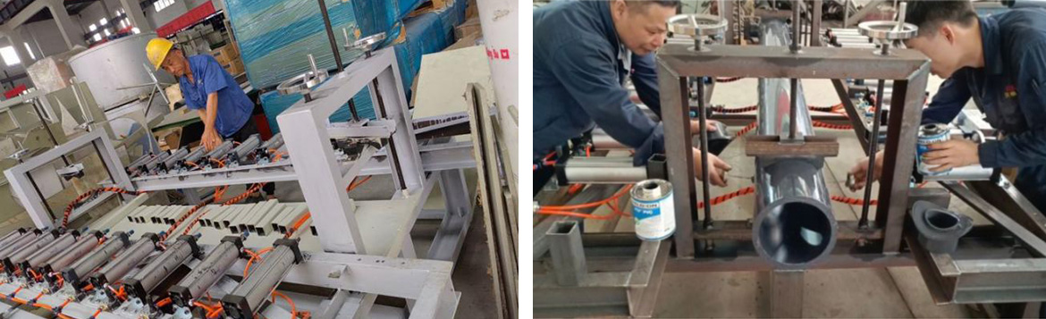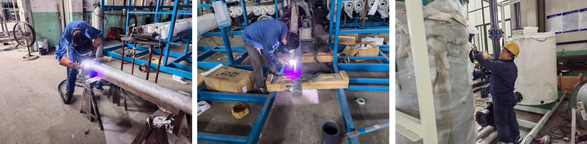 為了提高生產效率及保證產品質量,公司設計開發了生產輔助設備,成功制作了一臺半自動化工裝設備---膜管組件的組裝黏連機,效率提高3到4倍,質量明顯改變,生產員工勞動強度大大改善,為此我們點個贊。