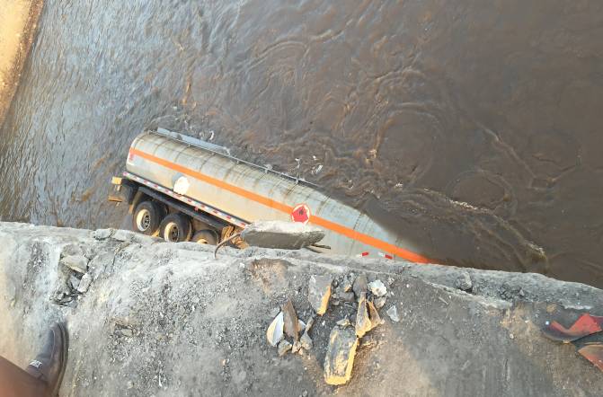 事故現場側翻落水粗苯罐車