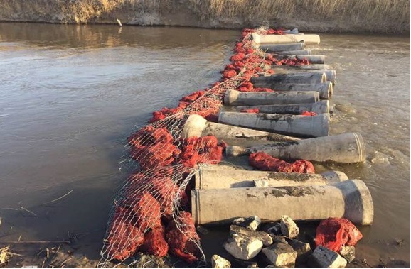 利用水泥管活性炭吸附壩消減污染
