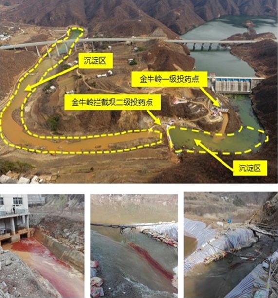 事件發生后,洛陽市啟動了III級突發環境事件應急響應,并成立了應急指揮部指揮開展應急處置工作。在環保部工作組與專家組的指導下,地方政府確定了切斷源頭、筑壩攔截、投藥降污和河道清淤的應急處置方案。