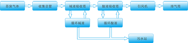 本技術(shù)針對的是污水處理站的惡臭氣體,污水處理站的惡臭氣體主要來源于進(jìn)水格柵、嚗氣沉沙池、初沉池、污泥脫水間、污泥沉淀池等;主要成分有氨氣、硫化氫和甲硫醇等無機(jī)物。根據(jù)污水處理站惡臭氣體的成分和特性,采用化學(xué)吸收法,使用螺旋噴霧填料裝置治理此類惡臭氣體,其治理效率極高。